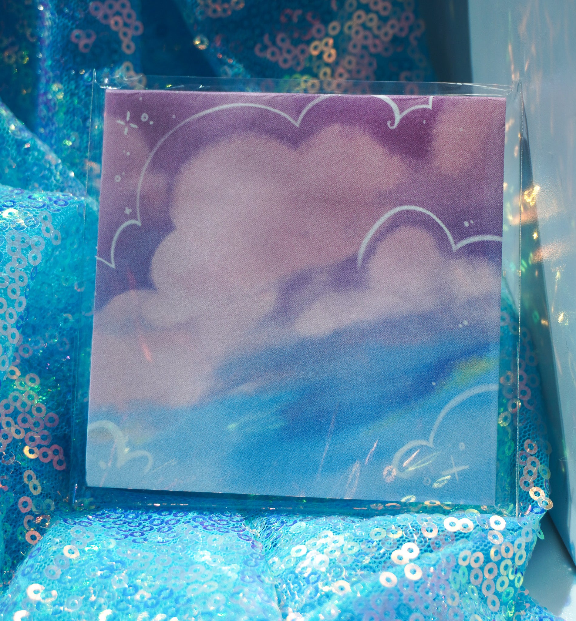 Stack of 50 3"x3" sticky notes, featuring a cloud themed design!
